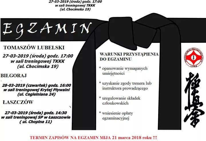 EGZAMIN SZKOLENIOWY NA STOPNIE KYU W TOMASZOWIE LUBELSKIM